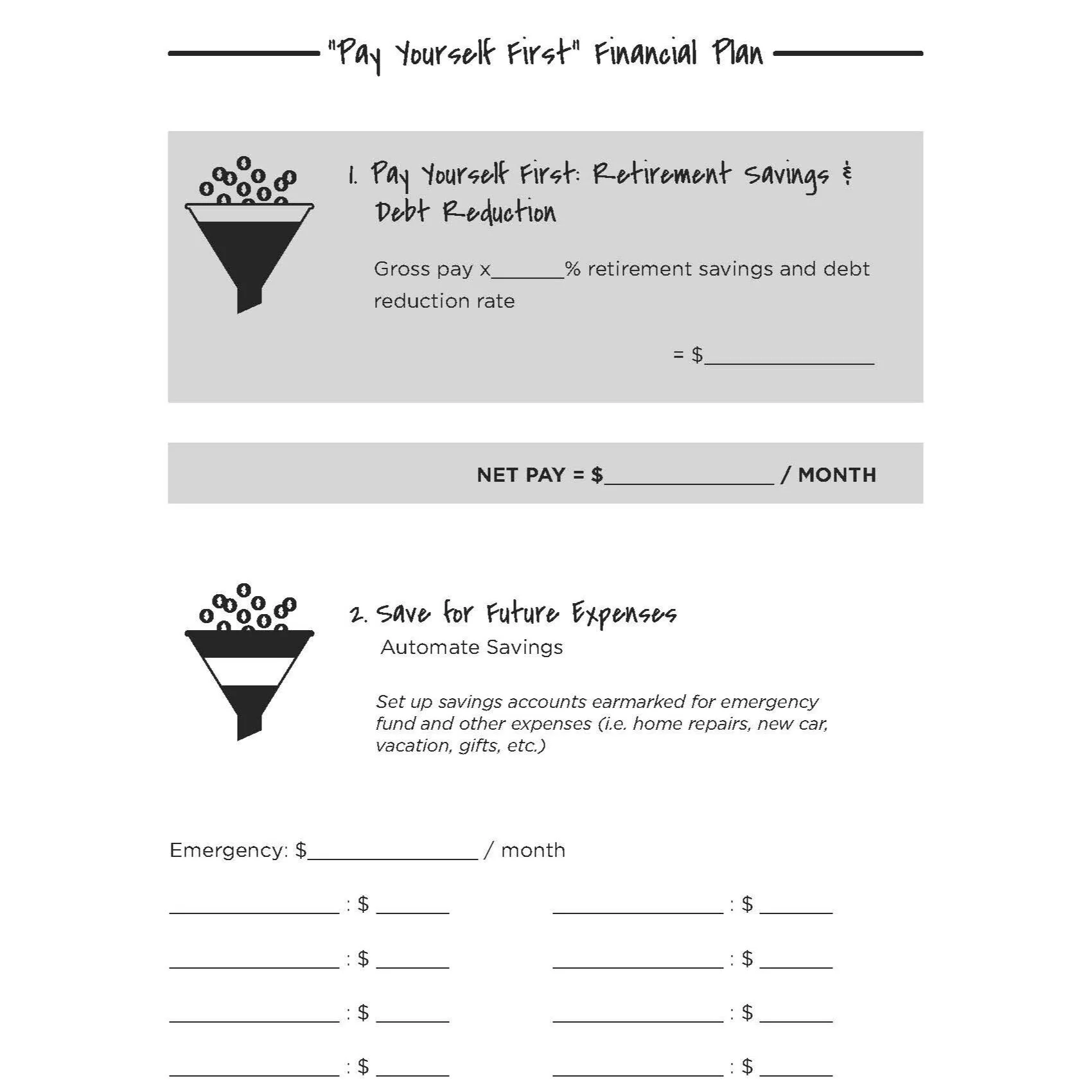 Welcome! I'm thrilled that you are here. That means that you're most likely making your way through the book and learning how to use your money to bring joy, security, and freedom. Importantly, you're here for worksheets and resources that will help you create a system that can work for your unique goals—a pay-yourself-first system that you can re-visit at any point throughout your life.